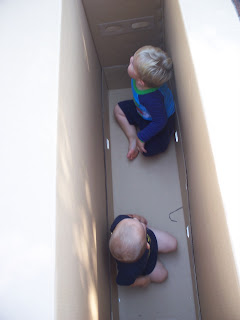 A neighbor recently purchased a 55-inch HDTV. On recycling day morning, while we were eating breakfast with Leo's best friend Noah, the box was just sitting outside for pick-up. Noah's mom spotted that box and the multitude of possibilities!!